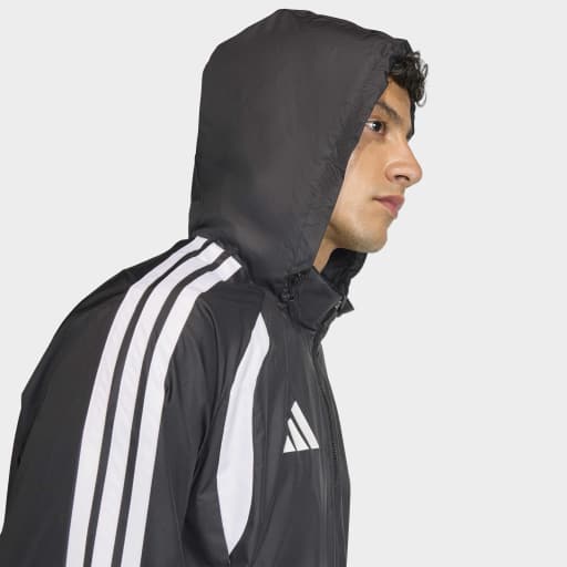 Ветровка Tiro26 League сочетает наследие adidas и современные инновации. Изготовленная из прочного рипстопа, она обеспечивает стиль и долговечность, а складной капюшон с регулируемыми шнурками и молния по всей длине добавляют универсальности и комфорта. Эластичные манжеты и накладные три полоски создают спортивный, продуманный образ, а классический логотип adidas завершает стильный дизайн. Эта ветровка идеально подходит для тренировки, активного отдыха и повседневного образа, сочетая функциональность и современный стиль.